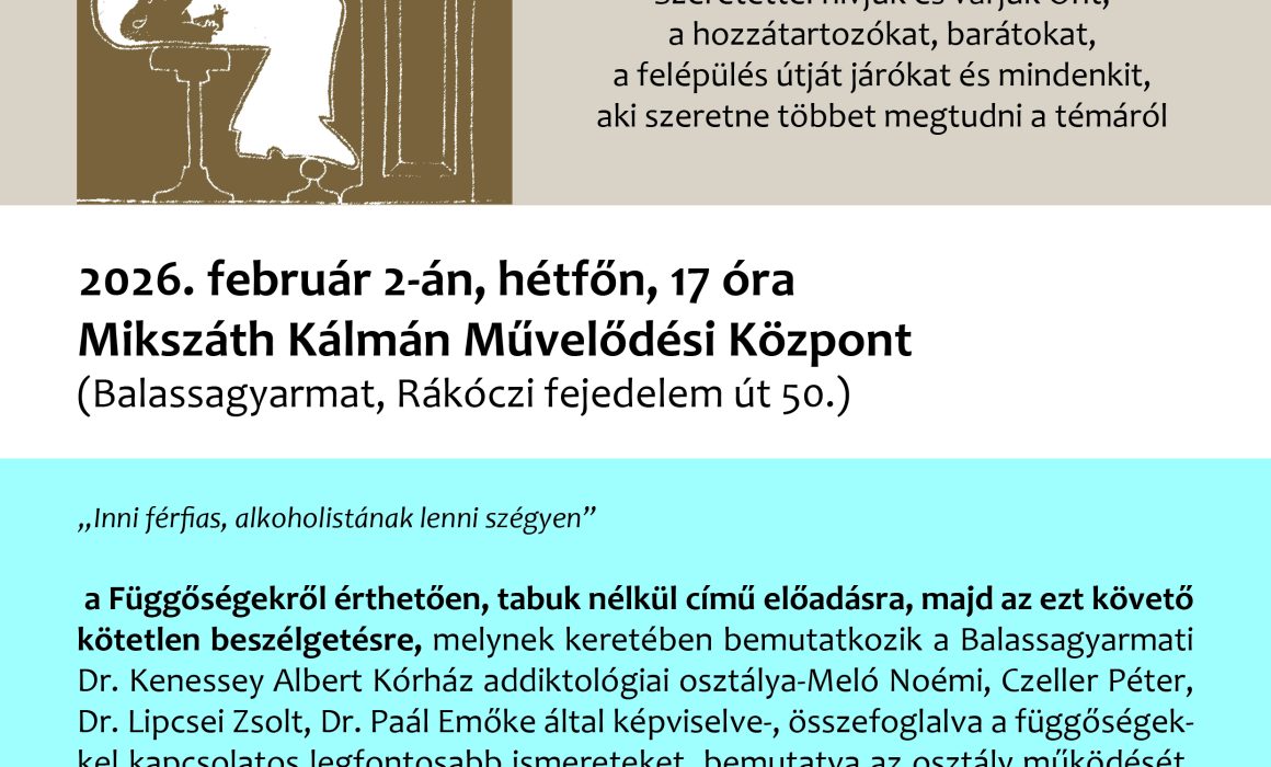 A Magyar Kultúra Napja 2026.01.22. csütörtök Balassagyarmat, Mikszáth Kálmán Művelődési Központ 18:00 A Mikszáth Kálmán Művelődési Központ örökös tagja díjátadó gála és pezsgős est Medvácz Lajos tiszteletére A belépés díjtalan, […]