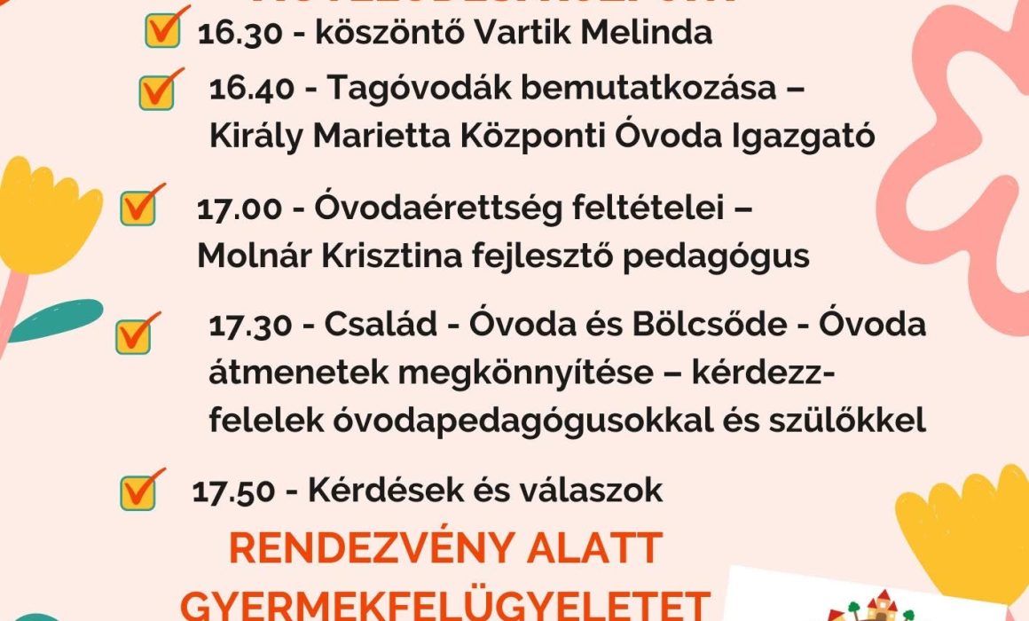 Úton az óvodába – feltételek, átmenetek, tanácsok 2026. április 17. 16:30 – 18:00 Balassagyarmat, Mikszáth Kálmán Művelődési Központ 16:30 – Köszöntő Vartik Melinda 16:40 – Tagóvodák bemutatkozása – Király Marietta […]